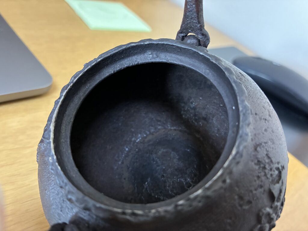 特にこの鉄瓶は茶漉しがある「煎茶鉄瓶」なので、茶葉を入れて火にかけることができますので、普通にお茶を淹れていれば、タンニン皮膜が維持されて錆びにくくなります。